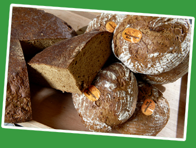 Täglich frisch gebacken - unsere Natursauerteigbrote. Die bekannten Wagenräder mit Natursauerteig ohne Zusatzstoffe und Färbungsmittel, doppelt gebacken mit einer scharfen Kruste.