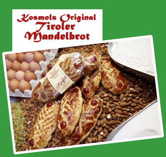 ...das Tiroler Mandelbrot, das aus fein vermahlenen italienischen Mandeln und frischem Zitronat und Orangeat besteht.